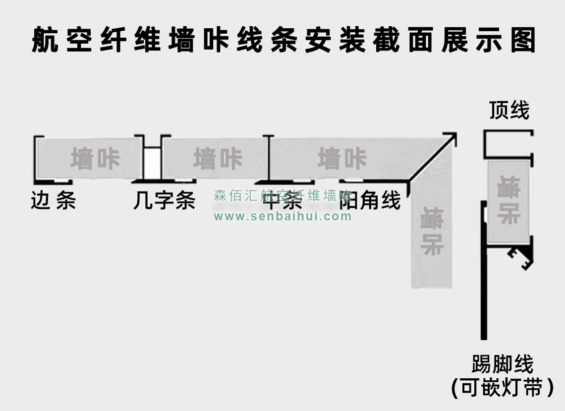 潮州航空纤维墙咔铝合金带灯中条(哑黑氧化)